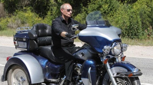 Saat menghadiri acara bikers di Ukraina saat itu, Putin menggunakan motor gede (moge) Harley-Davidson Lehman Trike roda tiga. Dengan menggunakan kaca mata hitam, baju serba hitam, Putin tampak gagah mengendarai motor besar berwarna biru dan beroda tiga itu.
