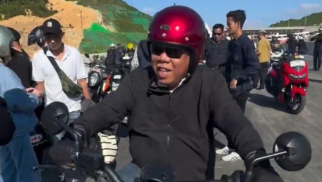 Menteri Pekerjaan Umum dan Perumahan Rakyat (PUPR) Basuki Hadimuljono menemani Presiden Joko Widodo untuk menjajal jalan tol di Ibu Kota Nusantara (IKN). Basuki nampak menggunakan motor gede dengan tampilan low rider.