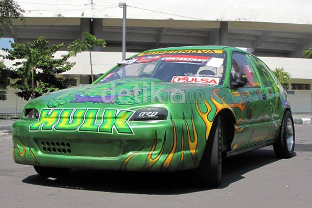 Bodi yang ditempelkan pada honda Civic ini bukanlah seperti Honda Civic yang ada di Indonesia, Haviedz mengambil body dari luar negeri agar tampak berbeda dari yang lainnya. Luthfi Andika/detikOto.