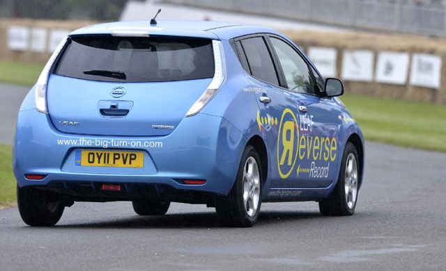 Jakarta - Teori kalau mobil bisa mundur sama cepatnya ketika melaju normal terbukti. Mobil listrik Nissan LEAF berhasil memecahkan rekor berjalan mundur tercepat sejauh 1 mil atau 1,6 km dengan kecepatan rata-rata 88 km per jam.