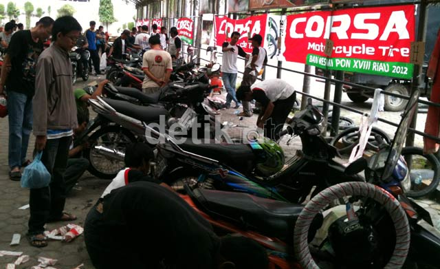 Para pengendara mengantre untuk mengganti ban motor mereka dengan ban baru Corsa. (dok. Corsa).