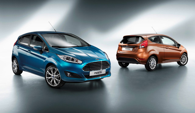 Pada Ford Fiesta model tahun 2013 ini tampak grille depan trapesium yang mirip dengan Fusion model tahun 2013. (dok Ford).
