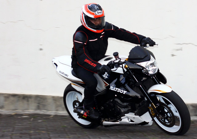 Tulisan playboy terdapat di bodi sisi kanan motor. (dok. Ariawan Wijaya)