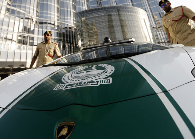 Polisi bernama Khalifa Abdullah Al-Falasi ini mendapat jatah mobil Lamborghini. REUTERS/Jumana El Heloueh.