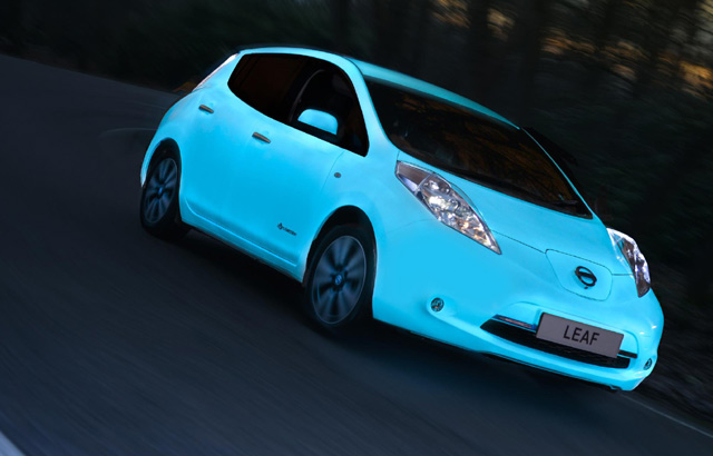 Cat itu digunakan pada mobil listrik Nissan LEAF. Untuk membuat cat khusus ini Nissan sampai harus meminta bantuan seorang penemu Hamish Scott yang menciptakan STARPATH. Sebuah cat pelapis (coating) yang menyerap sinar ultraviolet di siang hari dan kemudian memendarkannya di malam hari selama 8-10 jam. Cukup lama kan? Pool/dok Nissan.