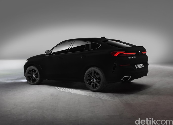 Mobil bergaya crossover coupe ini menggunakan cat Vantablack VBX2 yang dikembangkan oleh Surrey Nanosystem untuk penggunaan antariksa. Foto: BMW