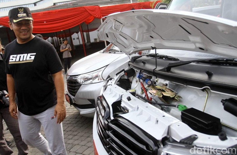 Wali Kota Semarang Hendrar Prihadi mengecek dua mobil Esemka yang telah dibeli Pemkot Semarang.