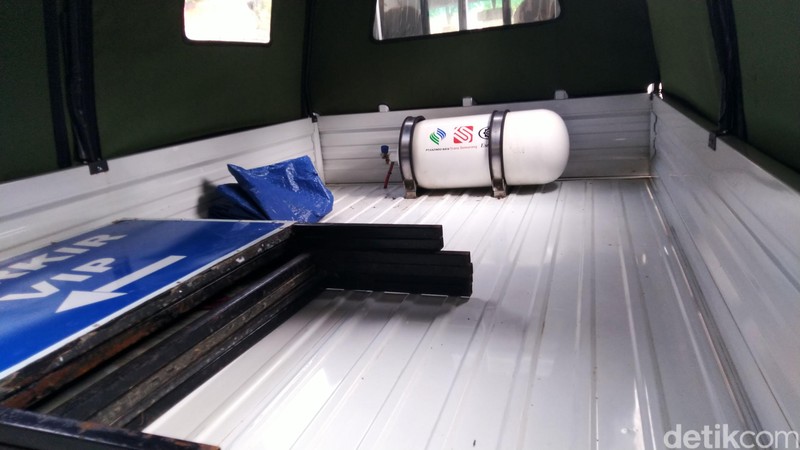 Mobil tersebut juga telah dipasangi tutup pada bagian bak terbukanya.