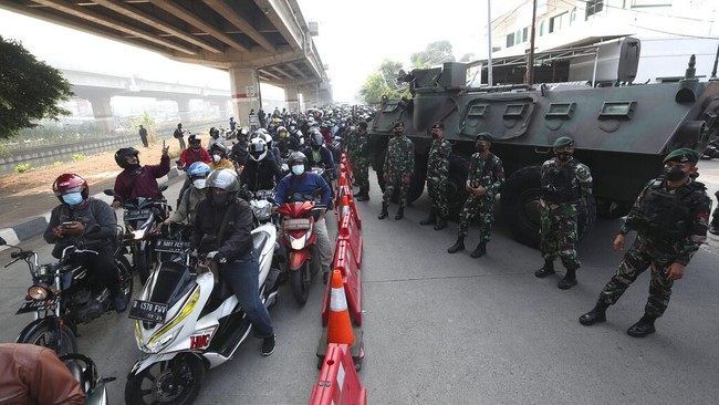 Jakarta - Panser Anoa dan Rantis Barracuda turut dikerahkan untuk menyekat kendaraan yang hendak masuk Jakarta saat PPKM Darurat diberlakukan. Berikut penampakannya.