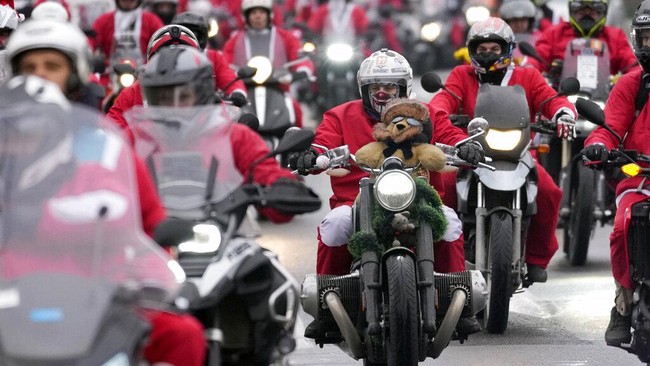 Aksi Biker di Serbia Konvoi Pakai Kostum Sinterklas Saat Natal