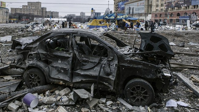 Ukraina - Invasi militer Rusia ke Ukraina telah memasuki hari keenam. Selain menimbulkan korban jiwa, invasi itu juga menghadirkan banyak kerusakan, termasuk mobil.