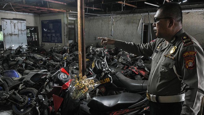 Cikarang - Ribuan motor bekas kecelakaan, sitaan, dan hasil tindak kejahatan ditampung di kantor Laka Lantas Polres Metro Bekasi, Cikarang, Jabar. Begini kondisi motornya.
