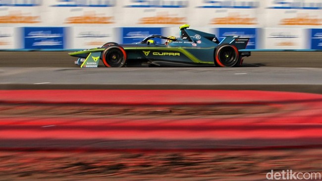 Jakarta - Latihan bebas kedua balapan Formula E 2023 dimulai. Para pebalap saling adu cepat di Jakarta International Eprix Circuit, Ancol.