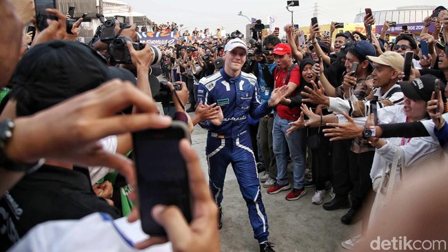 Selebrasi Gunther Usai Menjuarai Formula E Jakarta 2023 Seri 11