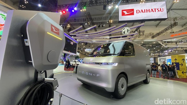 Daihatsu Vizion-F resmi dikenalkan di pameran Gaikindo Indonesia International Auto Show atau GIIAS 2023. Masih berbentuk konsep, van listrik tersebut belum mulai dijual di Tanah Air. Foto: Septian Farhan Nurhuda / detik