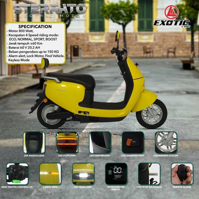 Jakarta - Exotic Sterrato merupakan motor listrik subsidi yang paling murah. Motor ini dijual Rp 5 jutaan dan bisa menempuh jarak sekitar 55 km.