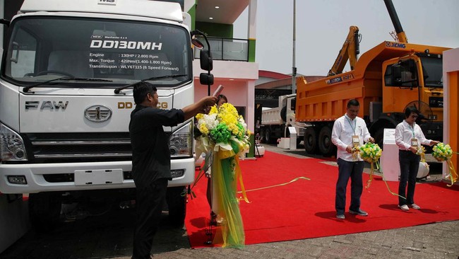 Melihat Deretan Truk yang Tampil di Pameran Alat Pertambangan