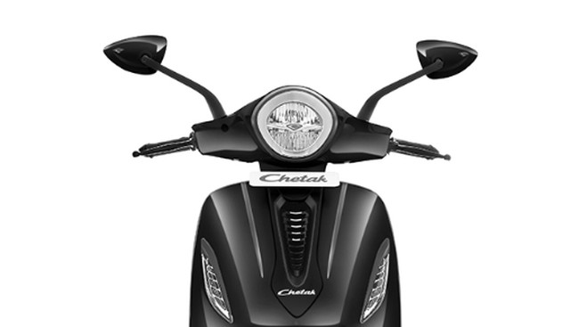 Bajaj Chetak model 2024 masih menganut desain yang sama seperti model sebelumnya, yakni bertubuh kompak dengan aksen membulat di hampir seluruh bagian. Foto: Doc. Bajaj.