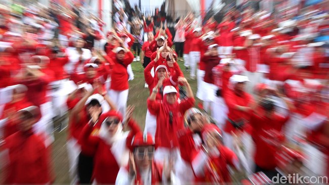 Bandung - Ragam komunitas hadir dalam Daihatsu Kumpul Sahabat Bandung. Salah satunya ibu-ibu zumba yang tampil kompak berpakaian serba merah putih.