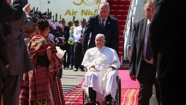 Timor Leste - Pemimpin Gereja Katolik sedunia, Paus Fransiskus tiba di Timor Leste. Lagi-lagi, Paus Fransiskus tidak menumpangi mobil mewah dalam kunjungan.