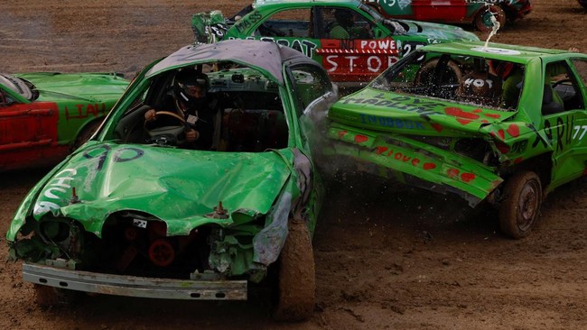 Malta - Lomba penghancuran mobil digelar di Ta' Qali, Malta. Kegiatan ini mengumpulkan dana bagi penderita kanker.