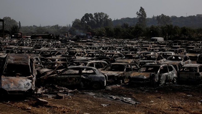 Ratusan Mobil Hangus Akibat Kebakaran Hutan di Yunani