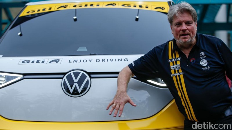 Rainer Zietlow singgah di Jakarta, Selasa (28/10/2025), dalam rangkaian ekspedisi ID. Buzz World Tour.