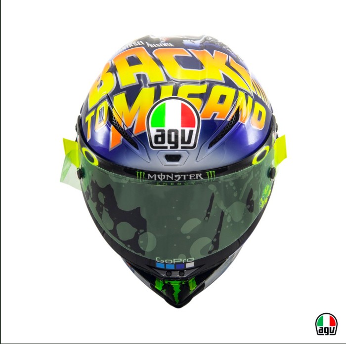 Sementara untuk desain helm seri AGV PISTA GP R ini terpampang jelas tulisan "Back To Misano" atau kembali ke Misano. Bukan tanpa sebab, pasalnya pada musim lalu The Doctor harus absen di kampung halamannya sendiri karena mengalami cedera.