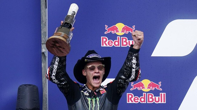 Fabio Quartararo sukses meraih podium dua di seri MotoGP Amerika 2021 dini hari tadi (4/10) WIB. Kendati tak bisa keluar sebagai juara, pebalap Monster Energy Yamaha itu sangat puas dengan hasil tersebut. Quartararo bahkan menyebut podium dua itu sebagai podium terbaik di sepanjang karier balapnya. Apa alasannya?
