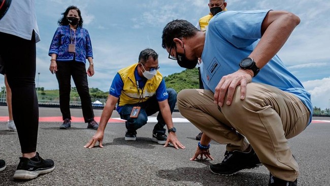 "Tepat di hari minggu kemarin, saya bersama bu Dewi dan beberapa rekan-rekan melakukan side visit ke Sirkuit Mandalika dan melihat dengan mata kepala sendiri section antara turn 17 sampai turn 5 di situ kurang lebih jaraknya sekitar 1,3 km yang akan dilakukan pengaspalan ulang," kata Sandiaga Uno dalam Weekly Press Briefing, Senin (21/2/2022).