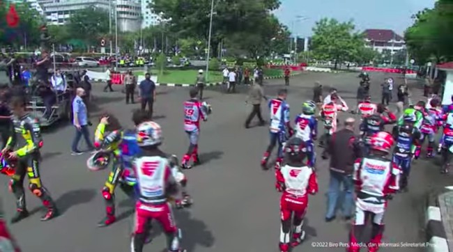 Acara berlanjut ke parade dari Istana Merdeka menuju Bundaran HI. Beberapa pebalap menggeber motornya untuk berkeliling dan telah disambut orang masyarakat di pinggir jalan. Saat ini parade masih berlangsung dan para pebalap mulai menuju Hotel Indonesia Kempinski.