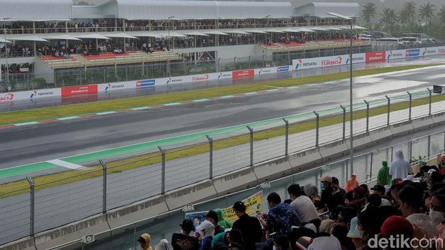 Kawasan sekitar Sirkuit Pertamina Mandalika mendadak diguyur hujan hanya beberapa menit jelang dimulainya race kelas MotoGP.