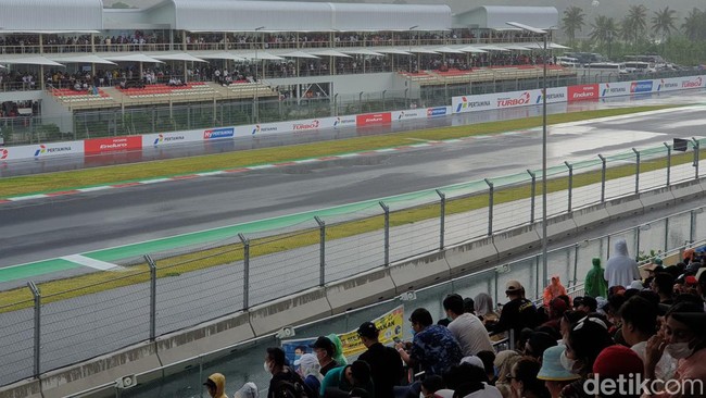 Namun ketika ingin dilakukan sesi balap MotoGP sekitar pukul 15.00 WITA, cuaca di sekitar Sirkuit Mandalika semakin mendung dan akhirnya turun hujan yang cukup deras.