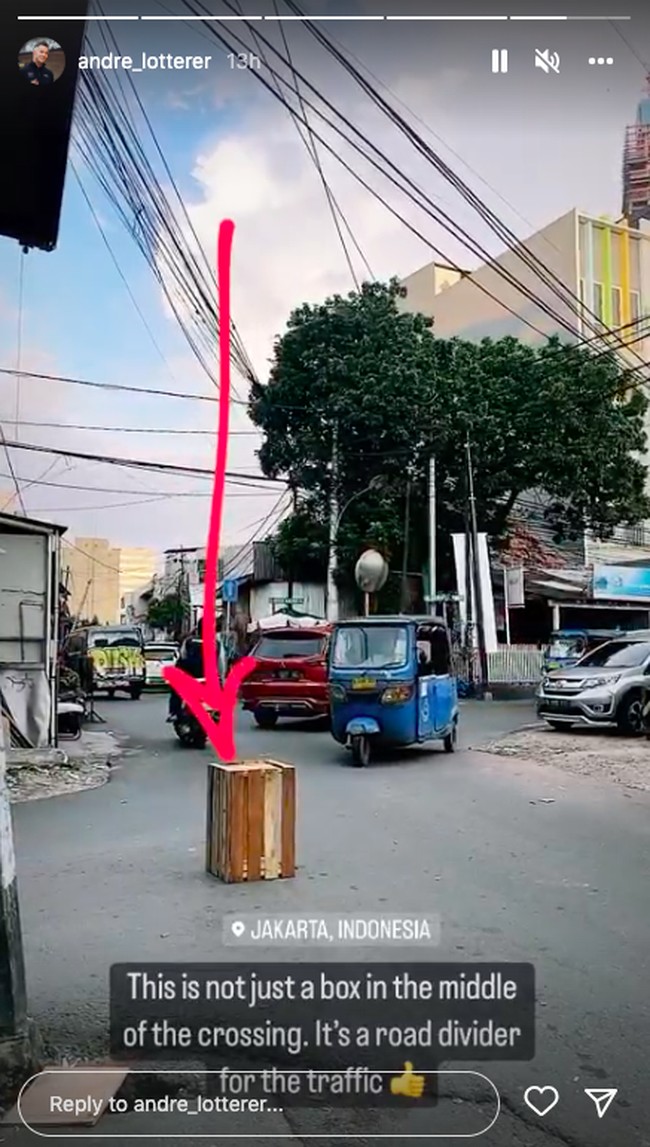 Pebalap Tag Heuer Prosche Formula E Team tersebut misalnya terlihat mengunjungi kafe dan juga toko barang antik. Tak cuma itu, Andre juga membagikan video 'kekagumannya' soal keberadaan peti kayu di tengah jalan. Dalam unggahan instastorynya itu, Andre menjelaskan itu bukan peti kayu sembarangan melainkan jadi pembatas jalan.