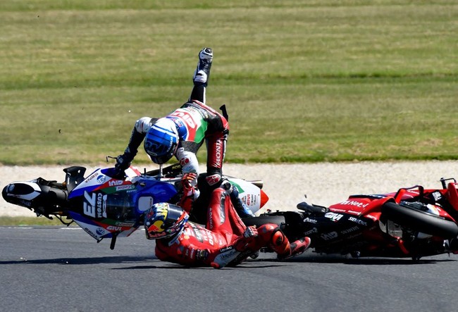 Kecelakaan horor itu terjadi pada lap kesembilan di tikungan empat yang dijuluki tikungan Jack Miller. Nahas, rider Ducati yang namanya digunakan untuk tikungan tersebut jatuh di lokasi itu karena ditabrak Alex Marquez.