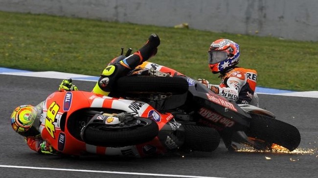 "Ban depannya tidak memberikan rasa percaya diri. Para rider normal yang berkendara dengan ban depan seperti Rossi atau Lorenzo, pasti kesulitan. Sementara, Casey Stoner balapan dengan ban belakang karena dia datang balapan dirt track.Rossi pun tak bisa membuat perbedaan," jelas Pirro.