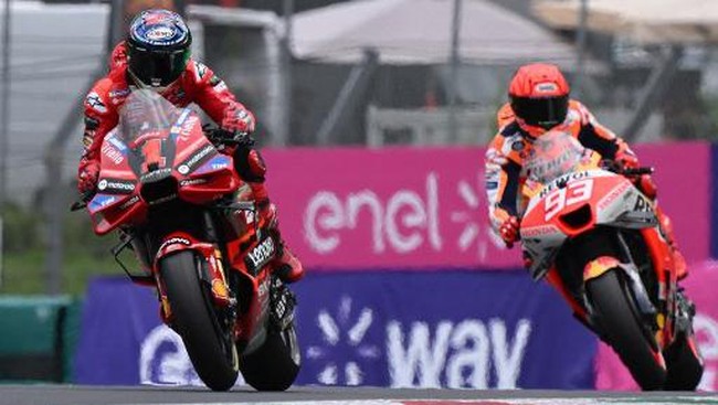 Dalam sesi kualifikasi di Sirkuit Mugello, Toskana, Italia, Sabtu (11/6/2023), Marquez dan Bagnaia terlihat mengalami perseteruan. Keduanya saling berpapasan di tikungan satu. Marquez dituding menghalangi jalan Bagnaia yang sedang menjalani lap cepat pertamanya pada putaran kedua.