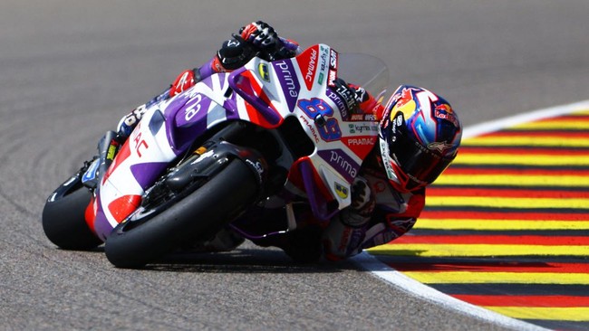 Seri ketujuh MotoGP 2023 tersaji di Sirkuit Sachsenring, Jerman, Minggu (18/6/2023). Jorge Martin keluar sebagai juaranya, diikuti Francesco Bagnaia di tempat kedua, serta Johann Zarco di urutan ketiga.