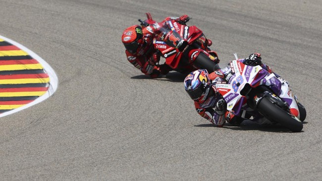 MotoGP Jerman 2023 telah selesai diselenggarakan pada Minggu (18/6/2023). Francesco Bagnaia masih kokoh di puncak klasemen sementara. Tapi Jorge Martin tampil makin bagus dan terus memangkas jarak dengan Bagnaia pada klasemen MotoGP 2023.
