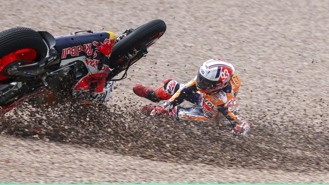 "Tapi dia memang terlihat kehilangan area belakang. Motornya berputar, dan tidak bisa dihentikan. Aku pun melihat high side. Aku takut karena kami pakai motor yang sama," ujar dia.