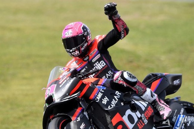 Empat pebalap Aprilia tampil menggila di MotoGP Inggris 2023. Aleix Espargaro (Aprilia Racing) finis pertama dengan mengasapi Farncesco Bagnaia (Ducati Lenovo), lanjut Miguel Oliveira (RNF Aprilia) finis keempat, dan Maverick Vinales (Aprilia Racing) finis kelima. Pebalap muda mereka, Raul Fernandez (RNF Aprilia), juga tampil cukup oke.