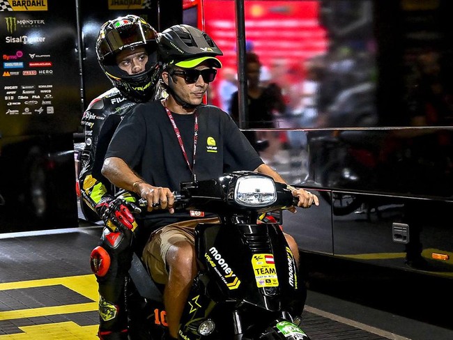 Aksi Valentino Rossi 'ngojek' di MotoGP Austria menyedot banyak perhatian. Rossi disela-sela latihan, kedapatan membonceng anak didiknya di akademi, Marco Bezzecchi yang berhenti di pinggir lintasan.