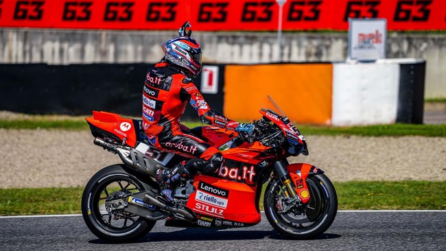 Francesco Bagnaia dinyatakan fit dan ikut melakoni FP1. Tapi yang sejatinya jadi laga kandang, Bagnaia perlu menemukan setelan motor lagi. Sebab dia hanya mengisi posi ke-20 atau 0,690 detik lebih lambat dari posisi pertama.