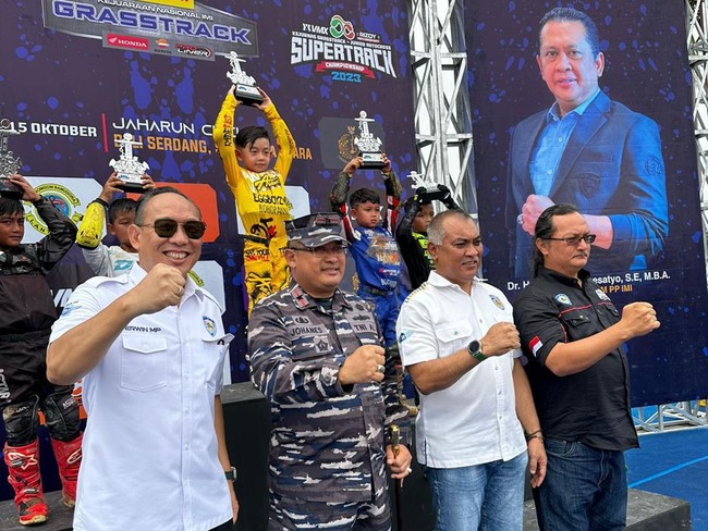 Ketua Umum Ikatan Motor Indonesia (IMI) Bambang Soesatyo mengapresiasi gelaran Grand Final Grasstrack dan Final Round Motocross Kejuaraan Nasional Grastrack - Motocross (Kejurnas GTX-MX) KASAL Cup JC Supertrack Championship 2023. Kejuaraan ini digelar di Sirkuit Jaharun, Deli Serdang, Sumatera Utara, Minggu (15/10) kemarin.