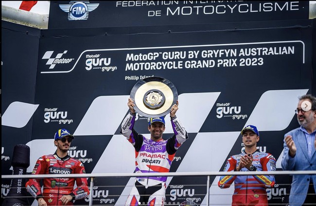 Di balapan utama MotoGP Australia 2023 pun Zarco bisa juara pertama karena Martin mengendur di lap terakhir lantaran bannya habis. Zarco yang menggunakan komposisi ban hard dan medium, bisa menghemat keausan ban dan 'menyerang' Fabio Di Giannantonio dan Jorge Martin untuk mengklaim posisi pertama.