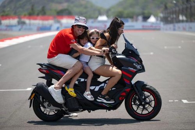 Selain bersama tim, Aleix Espargaro juga mengajak anak dan istrinya ke Lombok. Pebalap berusia 35 tahun tersebut akan mendapat dukungan ekstra selama membalap di MotoGP Mandalika.