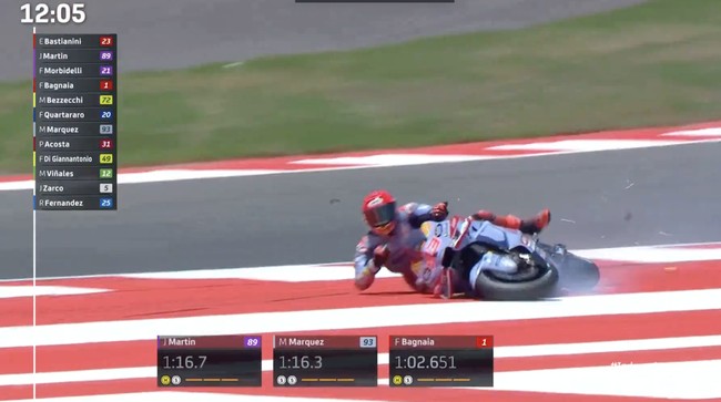 Pada tahun 2023, Marquez terjatuh di sesi balapan utama pada pertengahan lap. Sebelumnya, dia juga gagal di sesi Sprint Race karena terjatuh saat belum menyelesaikan satu putaran.