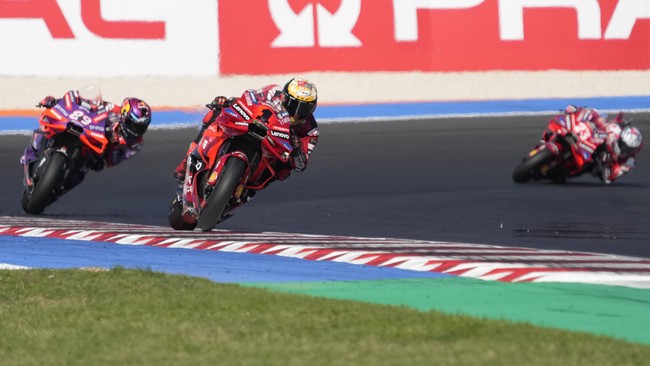 Francesco Bagnaia finis pertama di Sprint Race MotoGP Barcelona 2024, Sabtu (16/11). Sementara rival utamanya, Jorge Martin meraih posisi ketiga!
