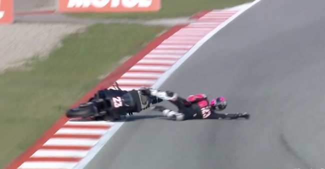 Bastianini terjatuh hingga berguling-guling di atas gravel, namun Bastianini dinyatakan masih fit. Hanya saja KTM RC-16 terbarunya hancur lebur saat menjalani sesi tes Barcelona. Ini jadi permulaan yang tidak mudah bagi Bastianini.