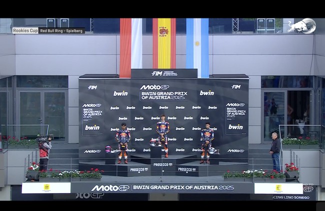 Pebalap Indonesia yang berlaga di Red Bull Rookies Cup, Veda Ega Pratama, kembali meraih podium di balapan Eropa. Veda untuk kedua kalinya berhasil mengibarkan Merah Putih di sirkuit Red Bull Ring, sirkuit yang juga menggelar MotoGP di hari yang sama.